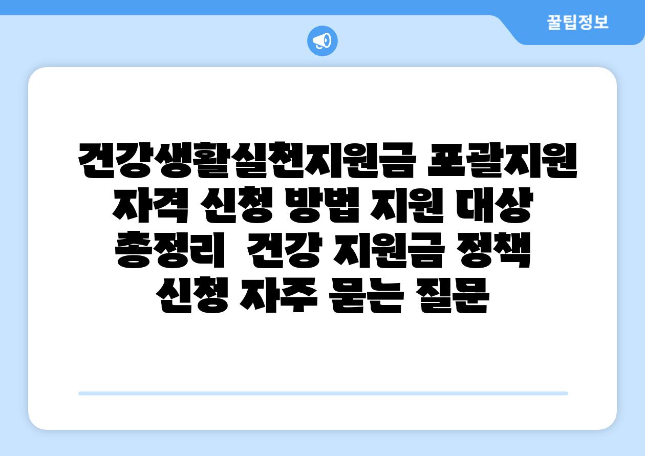 건강생활실천지원금 포괄지원| 자격, 신청 방법, 지원 대상 총정리 | 건강, 지원금, 정책, 신청 에 대해 자주 묻는 질문 TOP 5