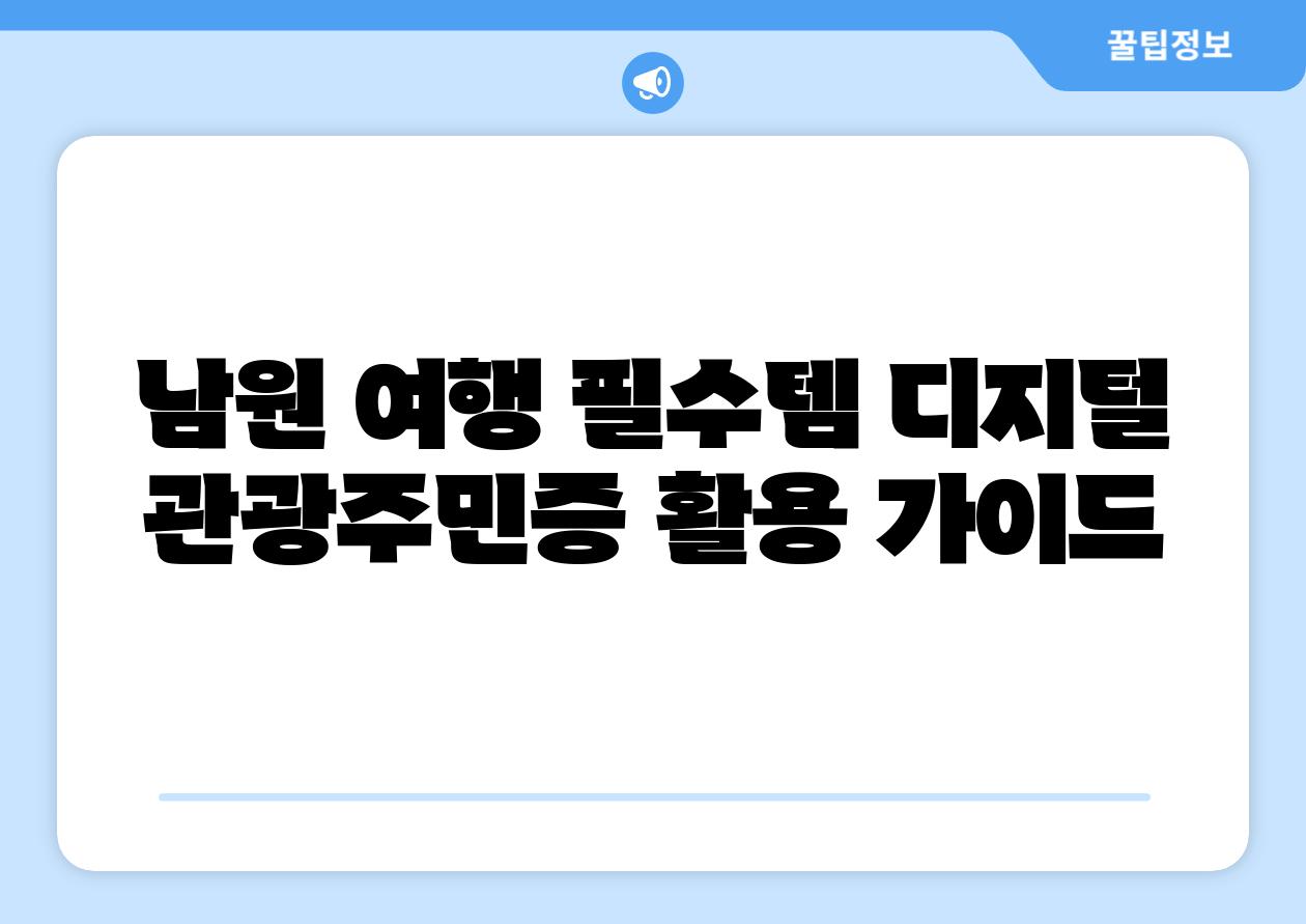 남원 디지털 관광주민증, 지금 바로 발급받고 혜택 누리세요!