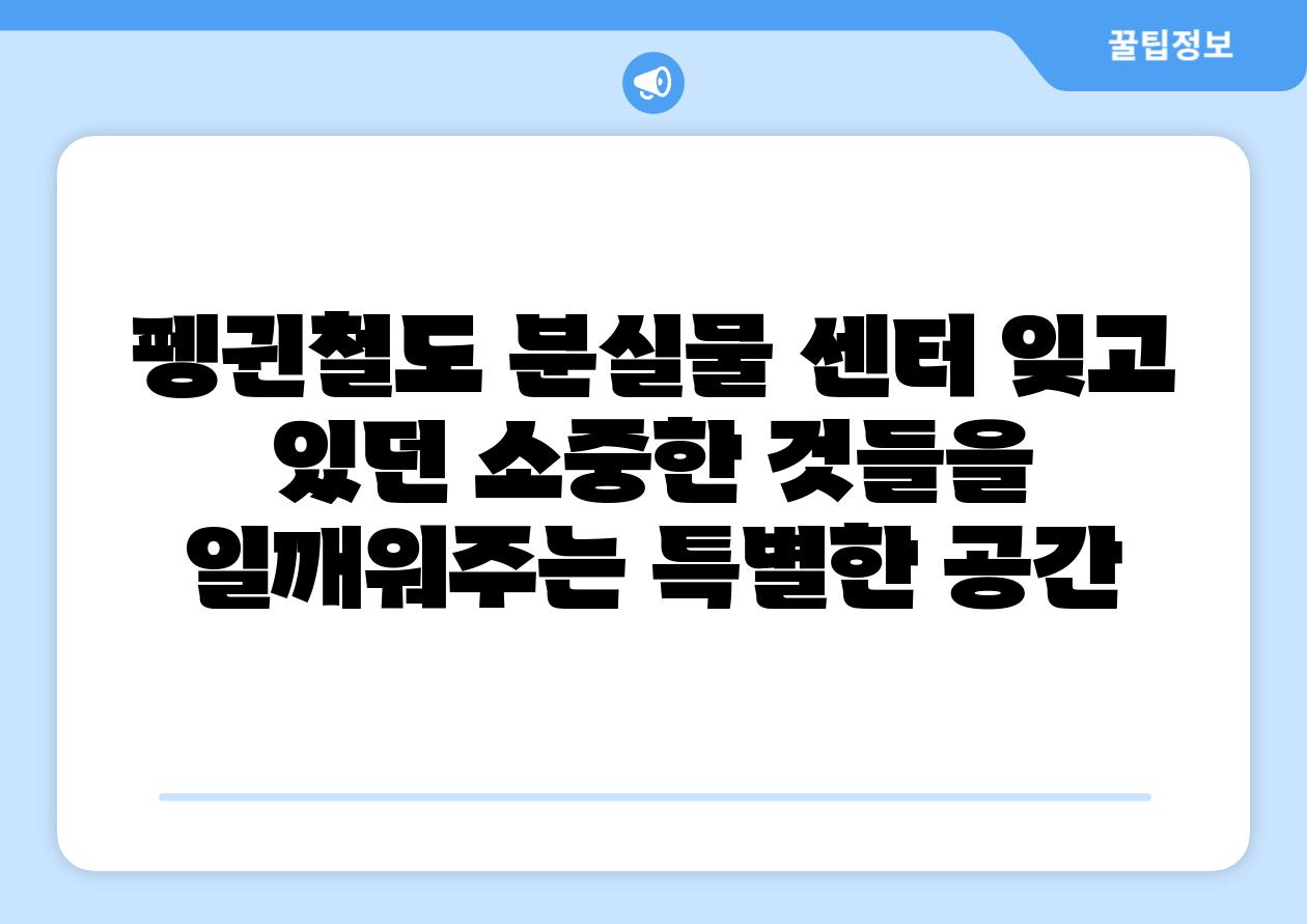 펭귄철도 분실물 센터는 단순한 분실물 보관소가 아니라 잃어버린 것들을 되찾아주는 곳입니다. 센터의 직원들은 잃어버린 물건을 찾기 위해 노력하고, 물건에 담긴 사연들을 통해 주인들을 위로하며, 잃어버린 것 이상의 가치를 되돌려주는 특별한 공간입니다. 센터는 잊어버린 물건들을 통해 주인공과 독자에게 따뜻한 위로와 희망을 전달합니다.