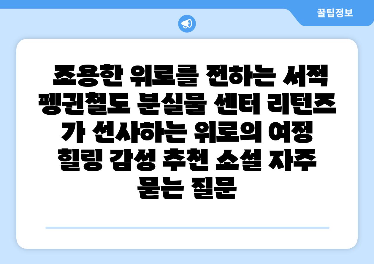 “조용한 위로를 전하는 서적| 펭귄철도 분실물 센터 리턴즈” 가 선사하는 위로의 여정 | 힐링, 감성, 추천, 소설 에 대해 자주 묻는 질문 TOP 5
