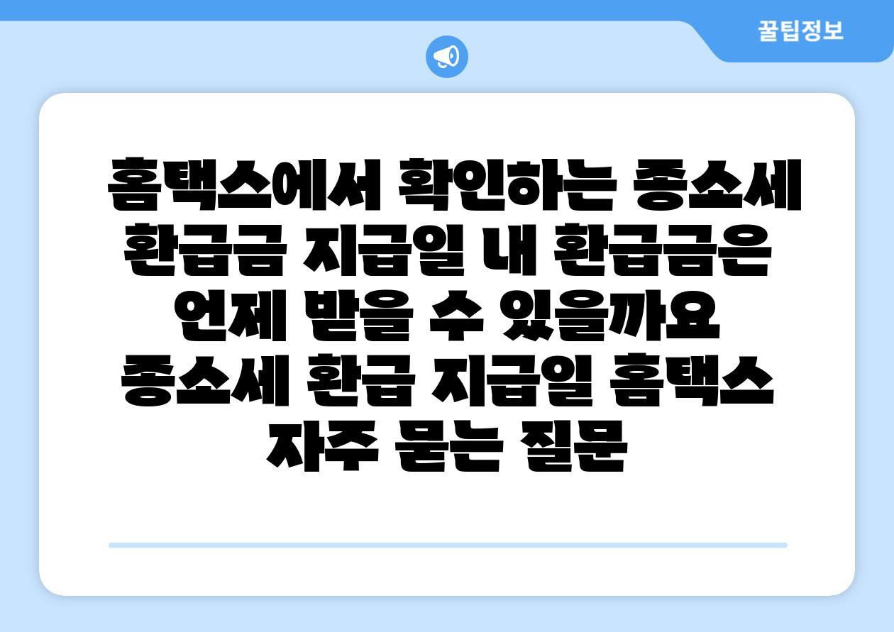 | 종소세, 환급, 지급일, 홈택스 에 대해 자주 묻는 질문 TOP 5